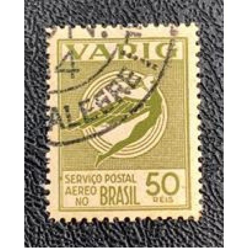 VARIG Nº27 - ÍCARO ESTILIZADO - 50 Réis, Oliva/Rosa - Carimbado - Imagem Ilustrativa - Carimbo Pode Variar -
